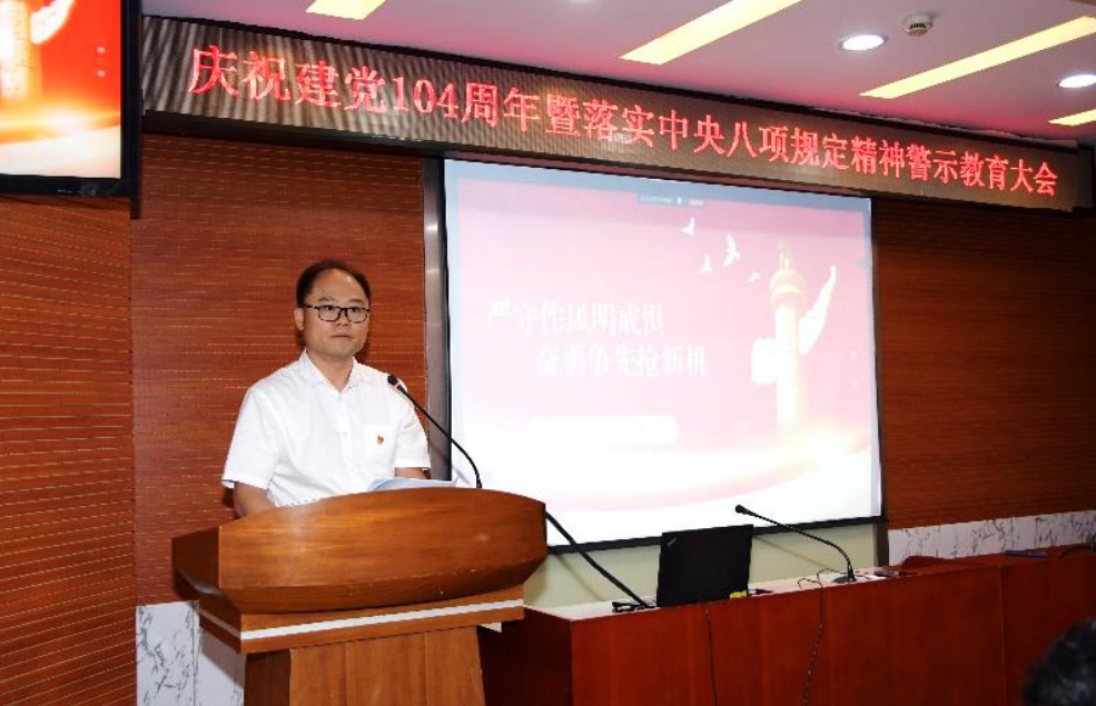7月4日下午,所(长通)党委召开庆祝建党104周年暨落实中央八项规定精神警示教育大会。党委书记、董事长邱祥平以“严守作风明戒惧,奋勇争先抢新机”为题上专题党课,纪委书记姜国围绕“学法律、明纪律、守廉洁”开展案例警示教育。党委副书记雷霆主持会议。
