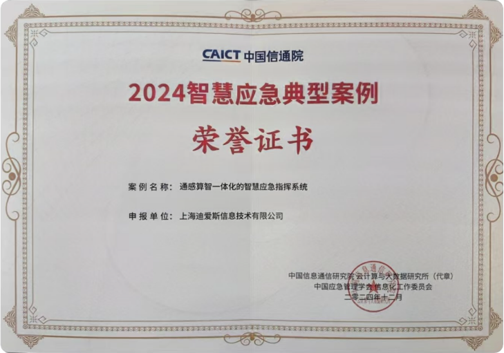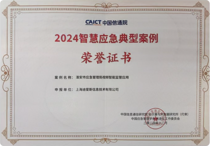 2024年7月,中国信息通信研究院联合中国应急管理学会信息化工作委员会,启动了2024智慧应急典型案例征集活动,旨在发掘和推广一批具有示范意义的智慧应急应用,助力各地智慧应急工作的深入开展。迪爱斯公司积极响应此次征集活动,分别申报了“淮安市应急管理局视频智能监管应用”和“通感算智一体化的智慧应急指挥系统”两个典型案例,针对当前应急处置中所面临的“联而不融、通而不畅、被动响应、分头出击”的瓶颈,依托泛在物联感知、视频智能分析、时空数据融合、融合通信、人工智能、知识图谱、协同决策等信息化技术,推动应急值守向综合值守转变,构建事前智能预警、事中精准响应、事后规范管理的全流程防救一体新模式。