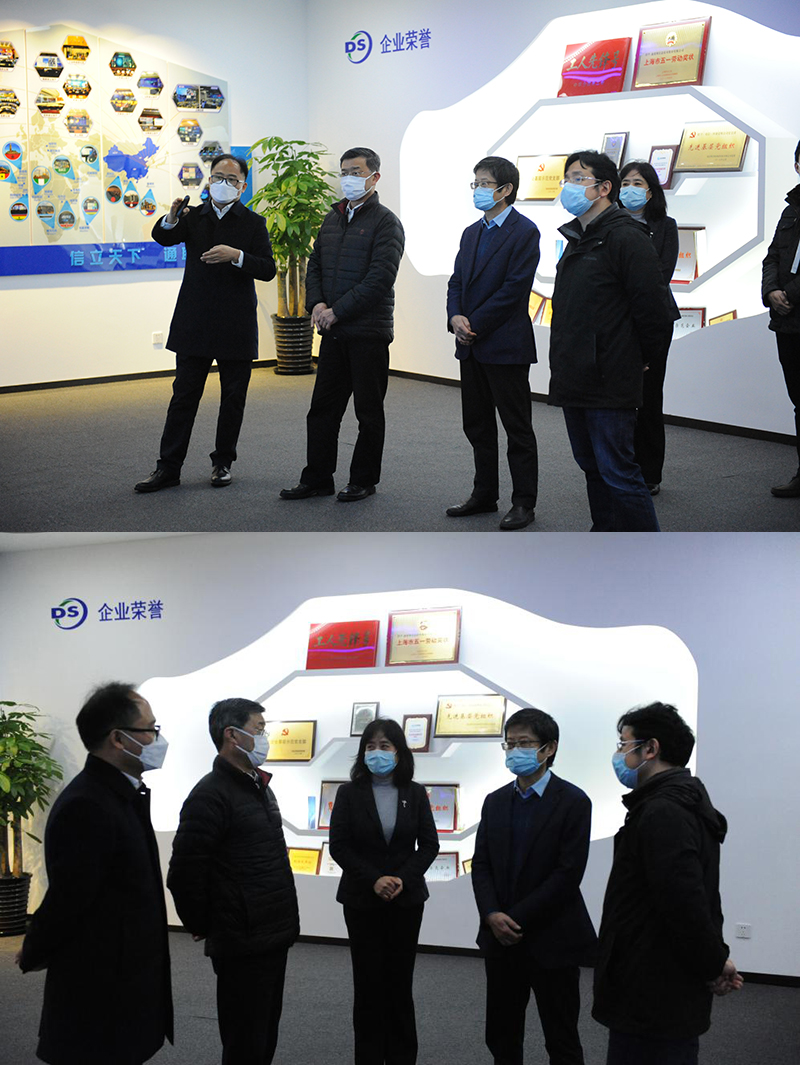 时任所长蒋志遥、党委书记蒋红梅、迪爱斯公司总经理邱祥平、总工程师雷霆陪同陆晓春书记参观了迪爱斯公司展厅。陆书记听取了邱祥平总经理关于公司复工复产及疫情防控总体情况介绍,观摩了公司运用大数据、人工智能等信息化手段助力政府、公安等防控疫情的应用演示,并回应了公司复工复产相关问题。
