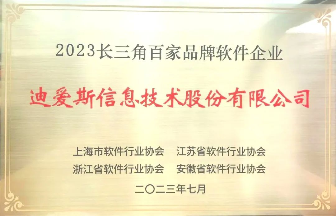 祝贺!迪爱斯公司荣登“2023长三角百家品牌软件企业”榜单