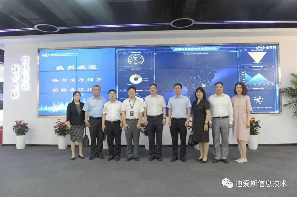 哈尔滨市委常委、副市长栾志成等领导一行莅临迪爱斯公司调研指导,栾副市长一行参观了迪爱斯公司智慧应急展厅,深入了解了迪爱斯的发展历程、业务布局和未来规划。