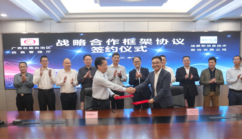 迪爱斯信息技术股份有限公司(简称“迪爱斯公司”)与广西壮族自治区应急厅签署战略合作框架协议,围绕广西应急管理信息化建设需求展开合作。