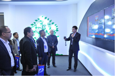 柬埔寨内政部少将魏·维斯纳一行来迪爱斯信息技术股份有限公司(以下简称“迪爱斯”)学习交流, 柬埔寨一行首先参观了迪爱斯演示大厅。